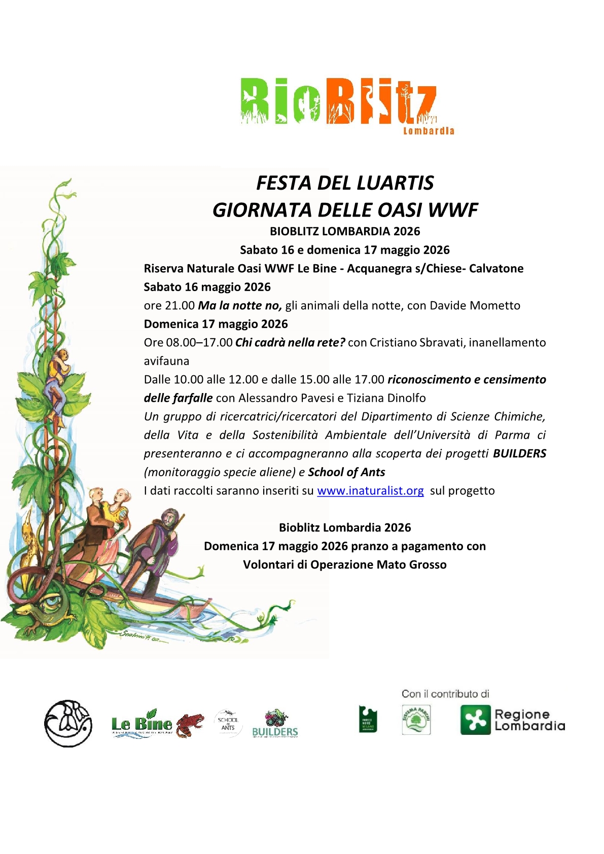 Bioblitz Lombardia è anche una tappa della Festa del Luartis per i comuni di Acquanegra sul Chiese e di Calvatone.
