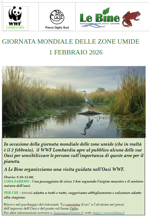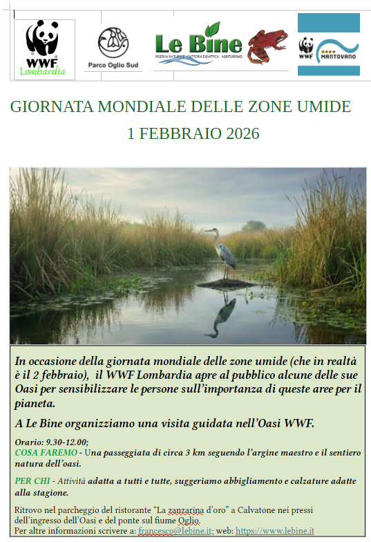 In occasione della giornata mondiale delle zone umide il WWF Lombardia apre al pubblico alcune sue Oasi e a Le Bine organizziamo una visita guidata gratuita nell’area protetta.